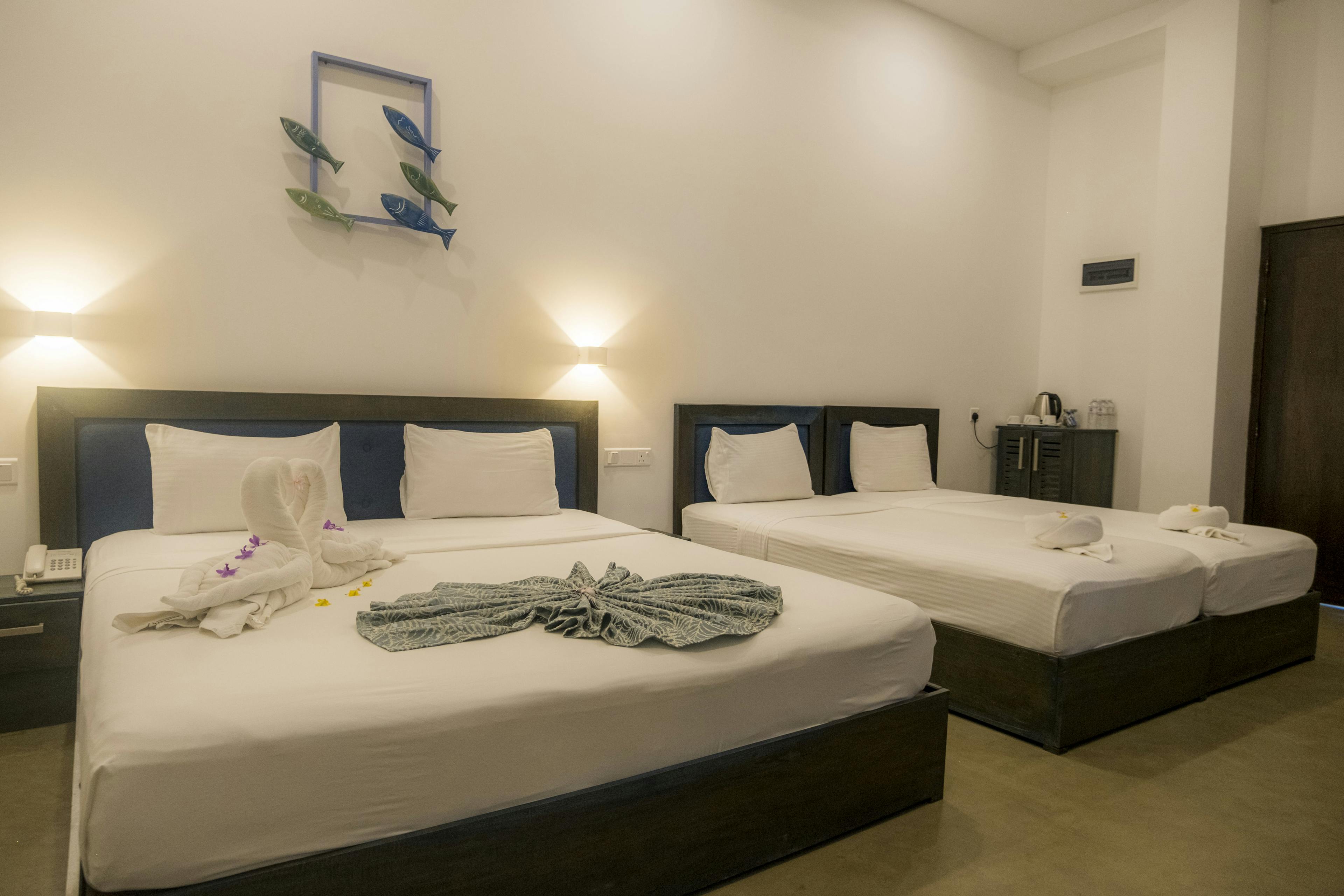 The hotel boasts of 26 elegantly appointed rooms that provide cozy surroundings with modern amenities and unparallel comfort. It consists of 14 Superior sea view rooms with private balcony, ensuring you can soak in the breathtaking Mirissa sunset, 9 Deux double rooms with seating area and balcony and 3 superior family/quadruple rooms. All rooms are spacious with stylish furnishing with gentle defused light that creates a welcoming, intimate and relaxing ambiance.